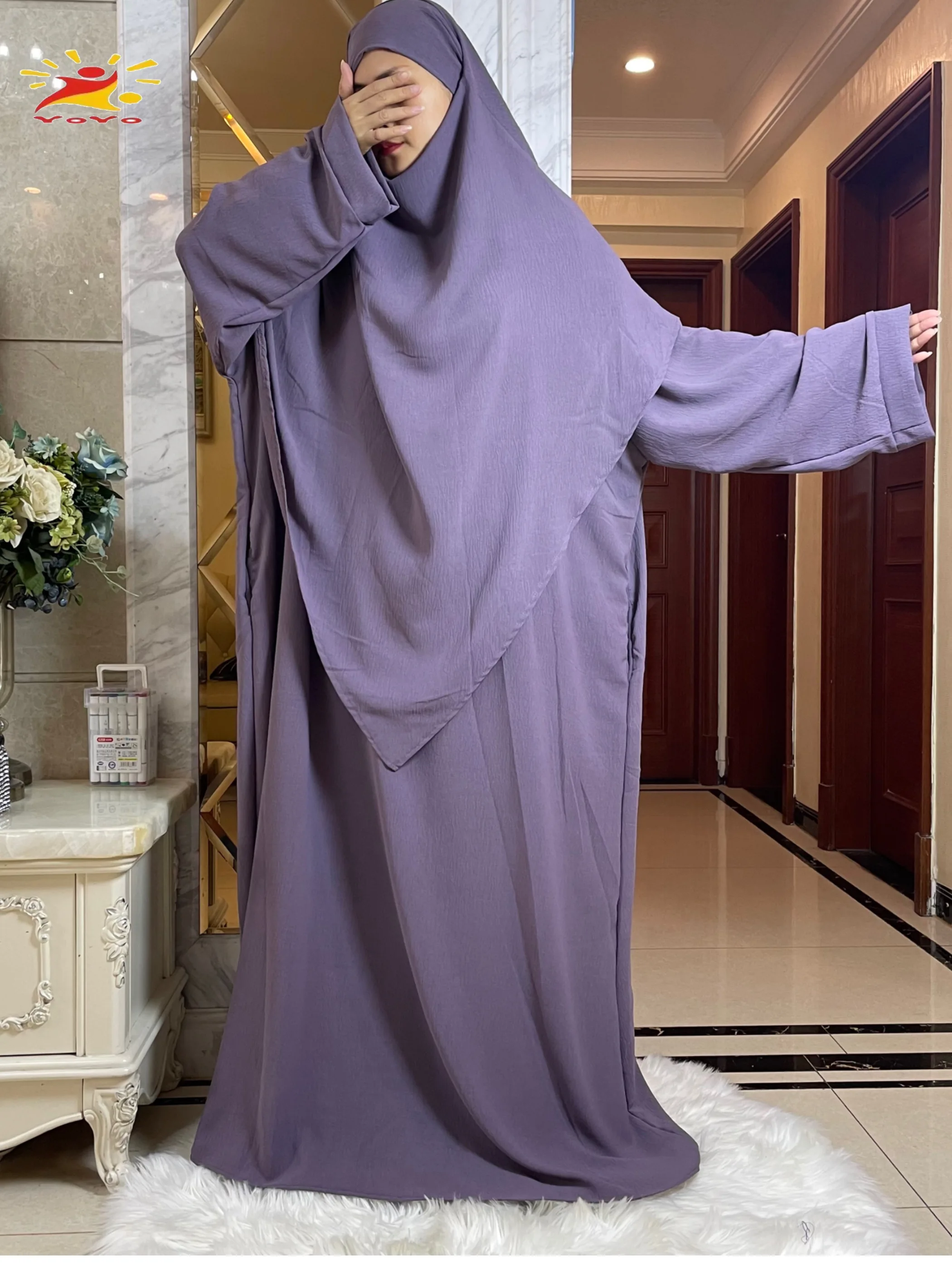 2025 Prayer Clothes Women Ramadan Islamic Jilbeb 2 Piece Set Dubai Turkish Modest Outfit Layered Khimar Scarf Hijab+Long Dress